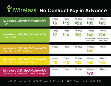 Android & Blackberry Mobile Phones available on iWireless No Contract Pay In Advance!