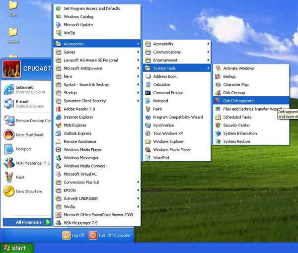 The first thing you will need to do is locate your Disk Defragmenter. It should be located in the start menu, click on all programs, go up to accessories, go down to system tools, and it should be inside there. There is a picture of this below.
