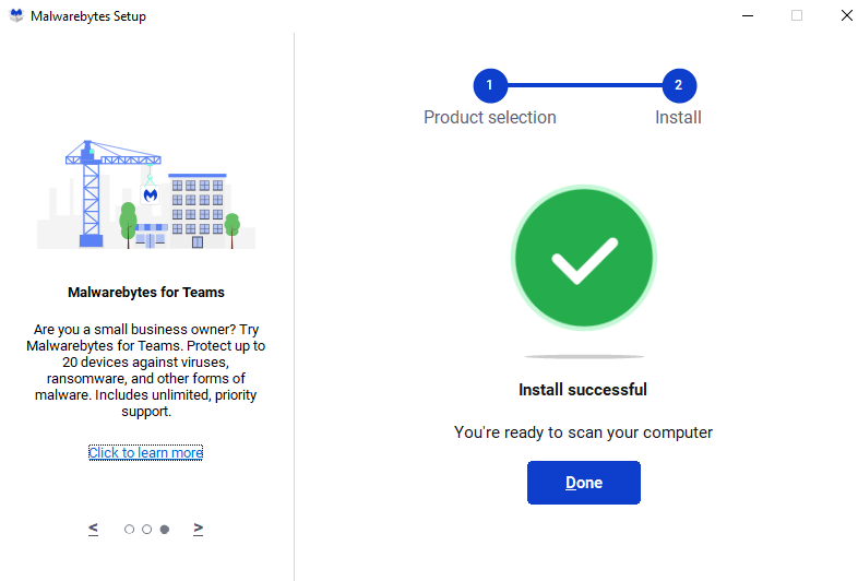 Select "Me or my Family" or "My Organization". Select next. Malware will begin installing automatically.