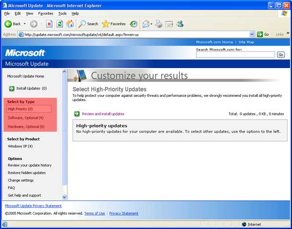Once Windows Update or Microsoft Update appears you need to select custom scan. Custom scan allows you to see all the updates available to your computer, where was Express only allows you to see the high-priority updates. The Custom scan button is highlighted in red.